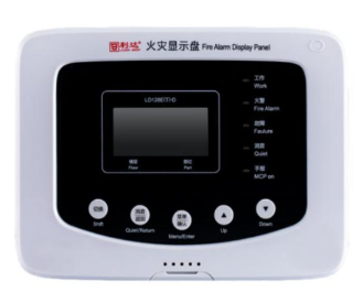 采用液晶數(shù)字顯示,配有發(fā)光二極管,指示系統(tǒng)關鍵狀態(tài)信息,可以直觀顯示火災報警控制器傳來的探測器的火警及故
